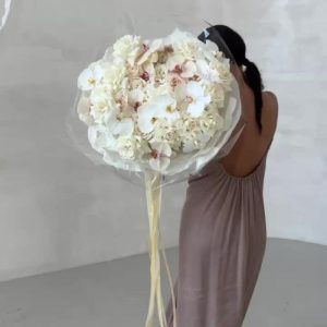 Букет с пионами ,орхидея ,Роза в дизайнерском оформлении