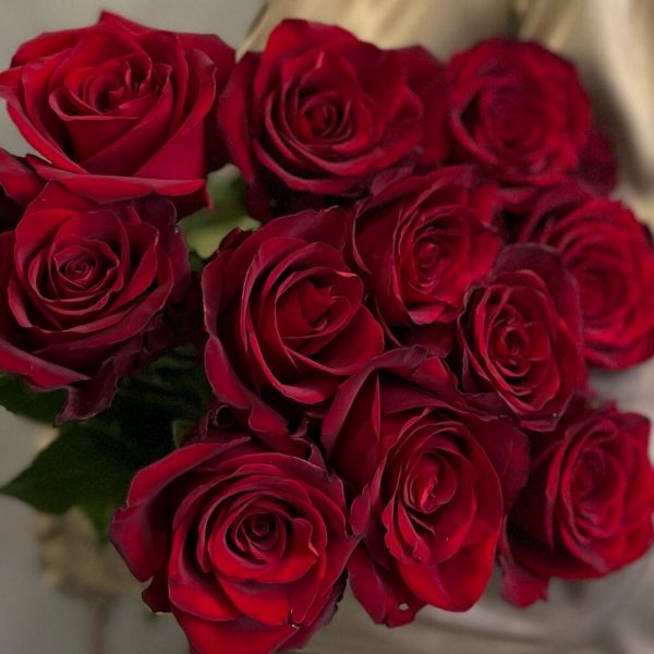 Атласная лента - 1 шт. Упаковка дизайнерская - 1 шт. красные розы - 11 шт.